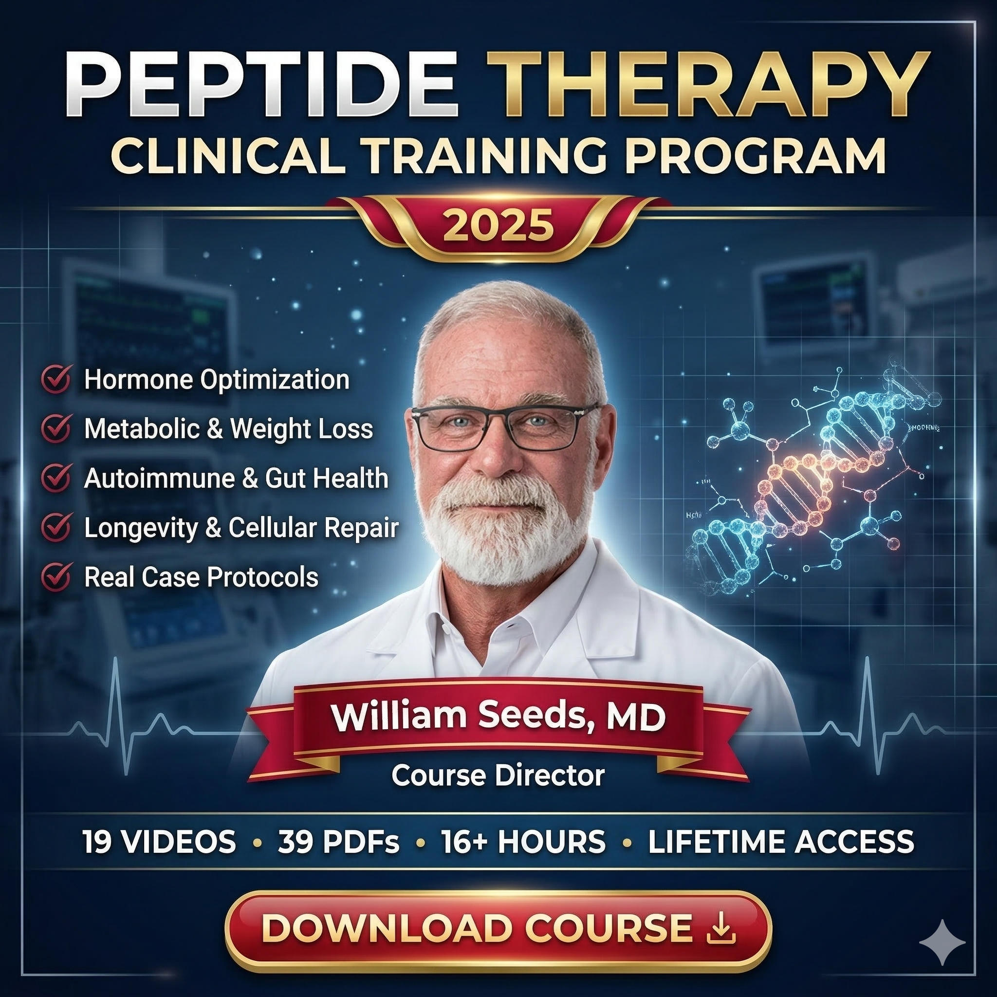 This advanced curriculum is created specifically for licensed clinicians, medical practitioners (MDs, DOs), nurse practitioners (NPs), physician assistants (PAs), researchers, and other healthcare providers who are looking to safely and effectively integrate cellular medicine and therapeutic peptides into their clinical protocols.